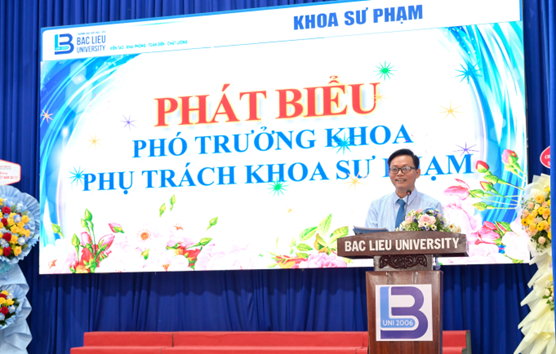 Trong buổi lễ, thay mặt cho Ban chủ nhiệm Khoa, TS Nguyễn Phước Hoàng đã gửi lời chúc mừng đến toàn thể quý thầy cô và các em sinh viên nhân ngày Nhà giáo Việt Nam 20/11. Bên cạnh đó thầy cũng có đôi lời phát biểu để ôn lại truyền thống Tôn sư trọng đạo của dân tộc Việt Nam và quá trình nỗ lực phát triển của Khoa trong thời gian qua. Thầy trân trọng cảm ơn công lao đóng góp của quý thầy cô và các em sinh viên qua nhiều thế hệ đã luôn đồng hành, cống hiến, chung tay góp sức để xây dựng Khoa Sư Phạm ngày càng phát triển bền vững và hưng thịnh. Thầy cũng kêu gọi tinh thần đoàn kết, năng động, sáng tạo của tập thể giảng viên, sinh viên Khoa Sư phạm; mong rằng tập thể Khoa sẽ tiếp tục phát huy những giá trị truyền thống tốt đẹp cũng như cố gắng phấn đấu để đóng góp nhiều hơn nữa vào sự phát triển và trưởng thành của Khoa trong bối cảnh mới. Thầy mong rằng trong năm học này và những năm tiếp theo, quý lãnh đạo Nhà trường tiếp tục quan tâm và tạo điều kiện giúp đỡ cho Khoa ngày càng lớn mạnh hơn và là địa chỉ đỏ đáng tin cậy trong công tác đào tạo nguồn giáo viên đạt chất lượng cao cho tỉnh nhà nói riêng và cho cả nước nói chung.