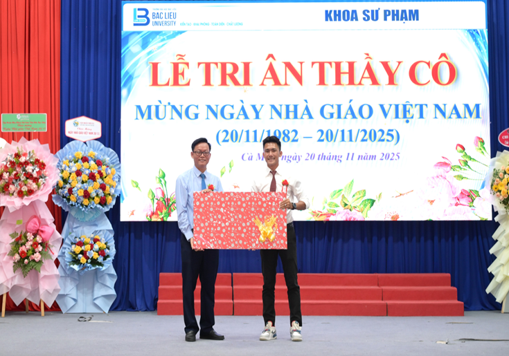 Hòa chung trong không khí hướng về ngày Nhà giáo Việt Nam trên cả nước, chiều ngày 20 tháng 11 năm 2025, tại Hội trường lớn, cơ sở 1, Trường Đại học Bạc Liêu, thầy và và trò Khoa Sư phạm đã long trọng tổ chức buổi lễ Tri ân thầy cô nhân dịp kỉ niệm 43 năm ngày Nhà giáo Việt Nam (20/11/1982-20/11/2025). Buổi lễ là dịp để giảng viên và sinh viên của Khoa cùng nhau ôn lại truyền thống của ngành giáo dục, tôn vinh những thành tựu, những đóng góp của quý thầy cô giáo đối với sự nghiệp giáo dục của Khoa Sư phạm nói riêng và Trường Đại học Bạc Liêu nói chung.