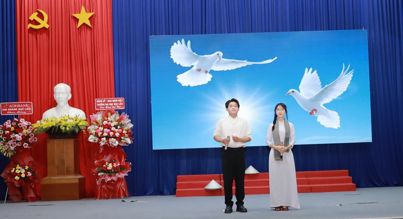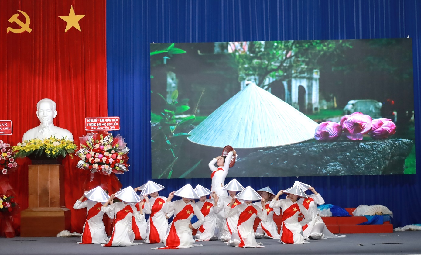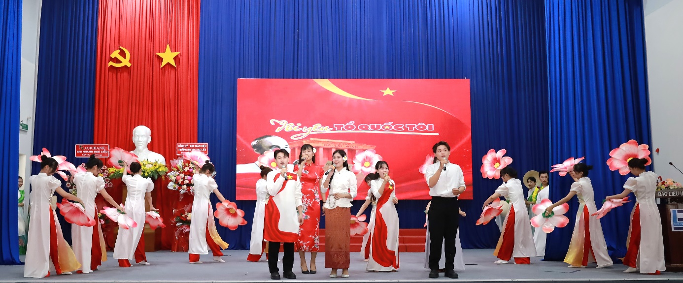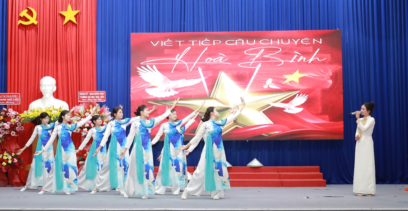 Mở đầu chương trình, không khí buổi lễ trở nên sôi động và hứng khởi với các tiết mục văn nghệ đặc sắc do chính sinh viên Khoa Sư phạm dàn dựng và biểu diễn. Những giai điệu tươi trẻ, trong sáng qua các ca khúc “Viết tiếp câu chuyện hòa bình”, “Tôi yêu Tổ quốc tôi”, “Tự nguyện”, “Nón lá Việt Nam” đã mang đến bầu không khí hân hoan, tràn đầy năng lượng cho buổi lễ.