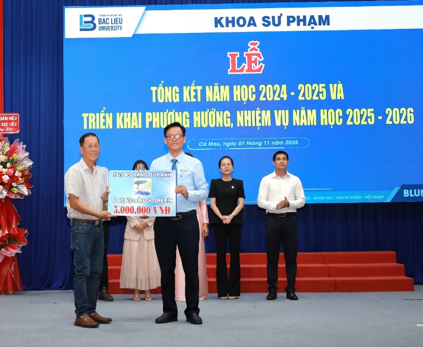 Nhằm đánh giá kết quả các mặt công tác trong năm học vừa qua và đề ra phương hướng, nhiệm vụ trọng tâm cho năm học mới, sáng ngày 01 tháng 11 năm 2025, tại Hội trường lớn, Cơ sở 1, Trường Đại học Bạc Liêu; Khoa Sư phạm đã long trọng tổ chức Lễ Tổng kết năm học 2024–2025 và triển khai phương hướng, nhiệm vụ năm học 2025–2026. Buổi lễ là dịp để tập thể cán bộ, giảng viên và sinh viên Khoa Sư phạm cùng nhìn lại những kết quả nổi bật đã đạt được trong các lĩnh vực: giáo dục chính trị tư tưởng, công tác chuyên môn, hoạt động nghiên cứu khoa học và phong trào phục vụ cộng đồng. Đồng thời, đây cũng là cơ hội để Khoa đánh giá những mặt còn hạn chế, rút ra bài học kinh nghiệm và xác định những nhiệm vụ trọng tâm, giải pháp thiết thực cho năm học mới.