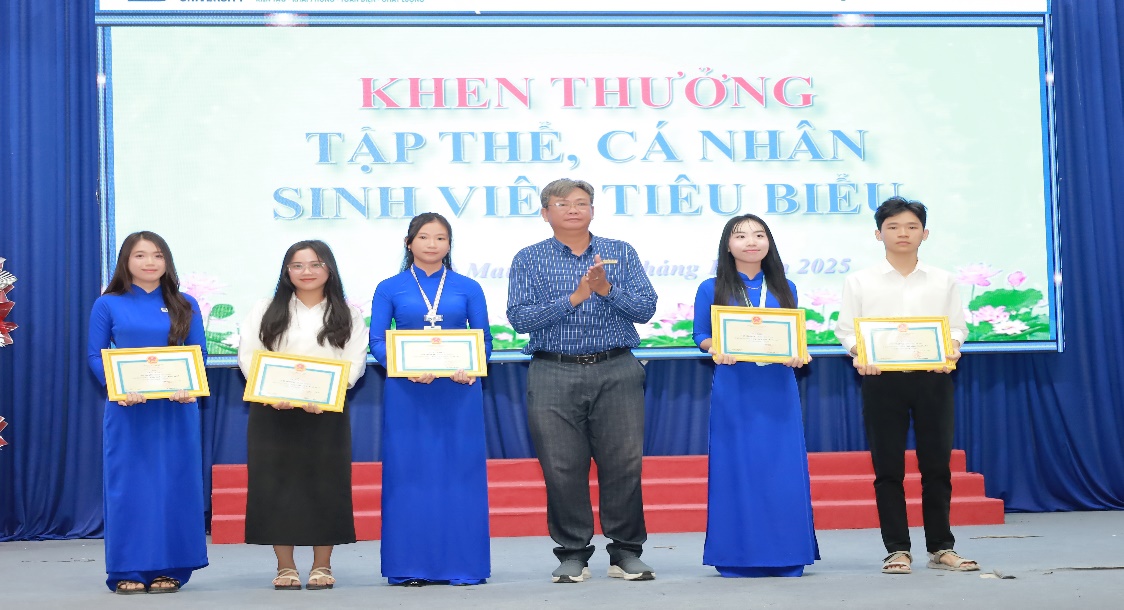 Một trong những điểm nhấn đáng nhớ của buổi lễ là chương trình khen thưởng, trao quà, trao học bổng khuyến khích học tập và quỹ hỗ trợ Khoa do Nhà trường và các đơn vị tài trợ dành tặng. Tại buổi lễ, Nhà trường đã khen thưởng 05 tập thể lớp xuất sắc và 12 cá nhân tiêu biểu.