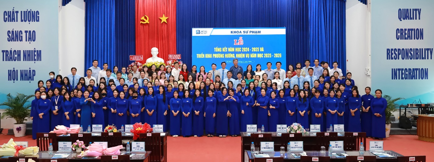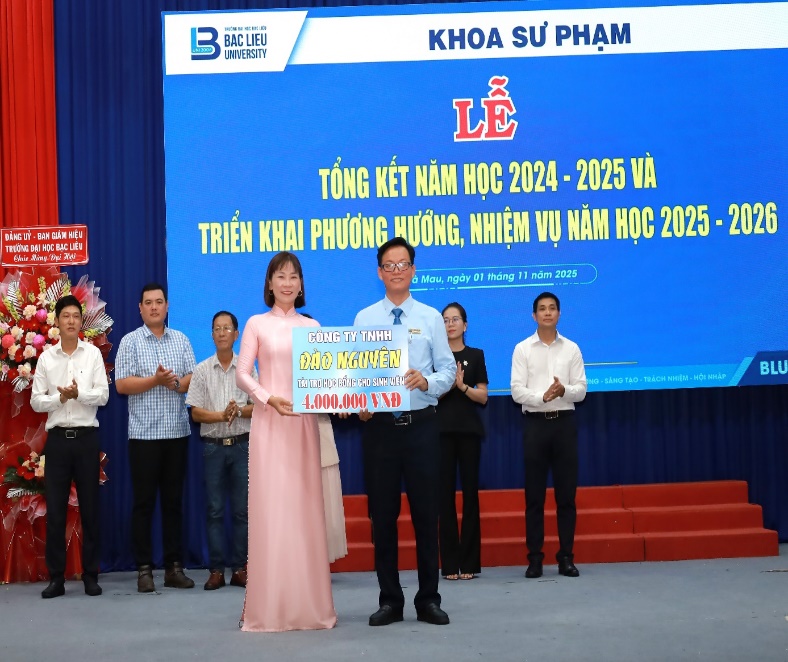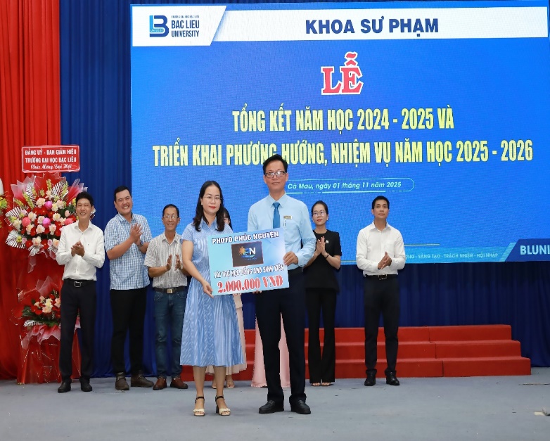 Buổi lễ tổng kết năm học của Khoa Sư phạm khép lại trong không khí ấm áp, tràn đầy niềm vui và tự hào. Những khoảnh khắc chụp hình lưu niệm giữa Ban Giám hiệu, giảng viên, sinh viên và các đơn vị tài trợ đã ghi lại dấu ấn đẹp của sự gắn kết, sẻ chia và tri ân. Tin rằng, với tinh thần đoàn kết, nhiệt huyết và quyết tâm đổi mới, tập thể Khoa Sư phạm sẽ tiếp tục gặt hái nhiều thành công hơn nữa trong năm học 2025–2026, góp phần vào sự phát triển bền vững của Trường Đại học Bạc Liêu và sự nghiệp trồng người cao quý của nước nhà.