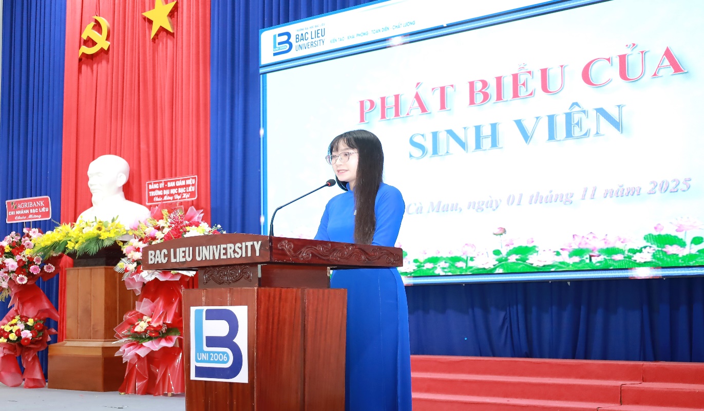 Đại diện cho sinh viên Khoa Sư phạm, Bạch Thị Bé Duyên – sinh viên lớp 17DGDTH1 – đã phát biểu bày tỏ niềm vinh dự và tự hào khi được học tập, rèn luyện trong môi trường năng động, giàu truyền thống của Khoa. Em gửi lời tri ân sâu sắc đến quý thầy cô đã tận tâm giảng dạy, đồng hành và truyền cảm hứng cho sinh viên trong suốt năm học vừa qua, đồng thời bày tỏ sinh viên Khoa Sư phạm sẽ quyết tâm nỗ lực không ngừng học tập, rèn luyện và cống hiến nhiều hơn nữa trong năm học mới.