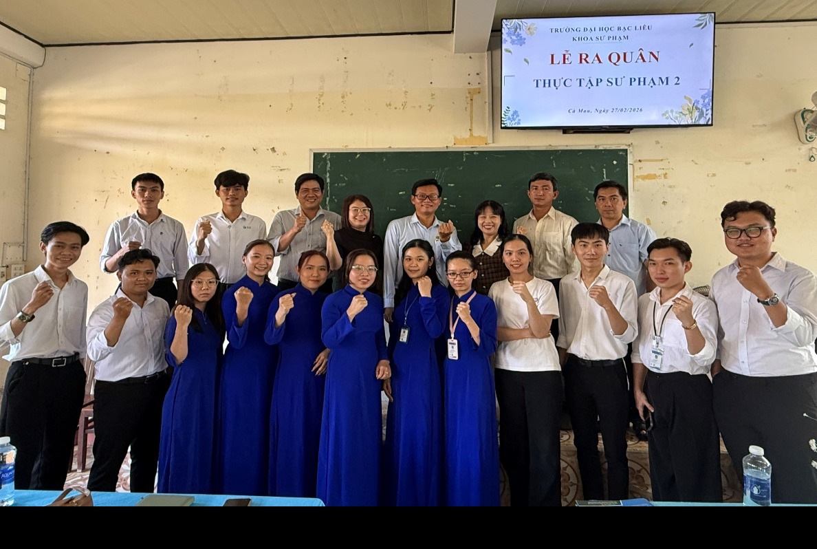 Sáng ngày 09/03/2026, sinh viên thuộc Khoa Sư phạm, Trường Đại học Bạc Liêu đã đồng loạt thực hiện nhiệm vụ thực tập sư phạm 1 và 2 tại các cơ sở giáo dục trên địa bàn phường Bạc Liêu. Hoạt động thực tập sư phạm lần này được tổ chức căn cứ theo chương trình đào tạo và nhiệm vụ năm học 2025 - 2026, nhằm tạo điều kiện cho sinh viên vận dụng lý thuyết vào thực tế, rèn luyện kỹ năng nghiệp vụ và hình thành tác phong sư phạm chuẩn mực trước khi chính thức đứng trên bục giảng.